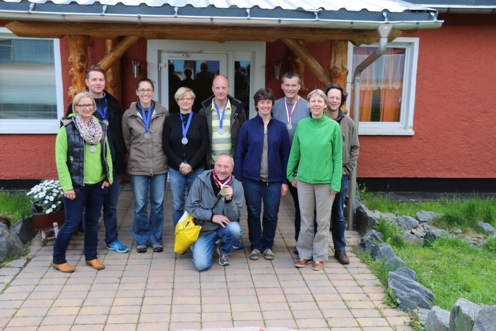9 Rennsteigläufer und eine Betreuerin nahmen an der diesjährigen Laufreise teil und starteten bei herrlichem Laufwetter zum Halbmarathon (21,1km) in Oberhof und zum Marathon (hier 43,5km) in Neuhaus. Das Ziel in Schmiedefeld erreichten trotz zwischenzeitlichem Regen und Hagelschauer Alle erfolgreich.